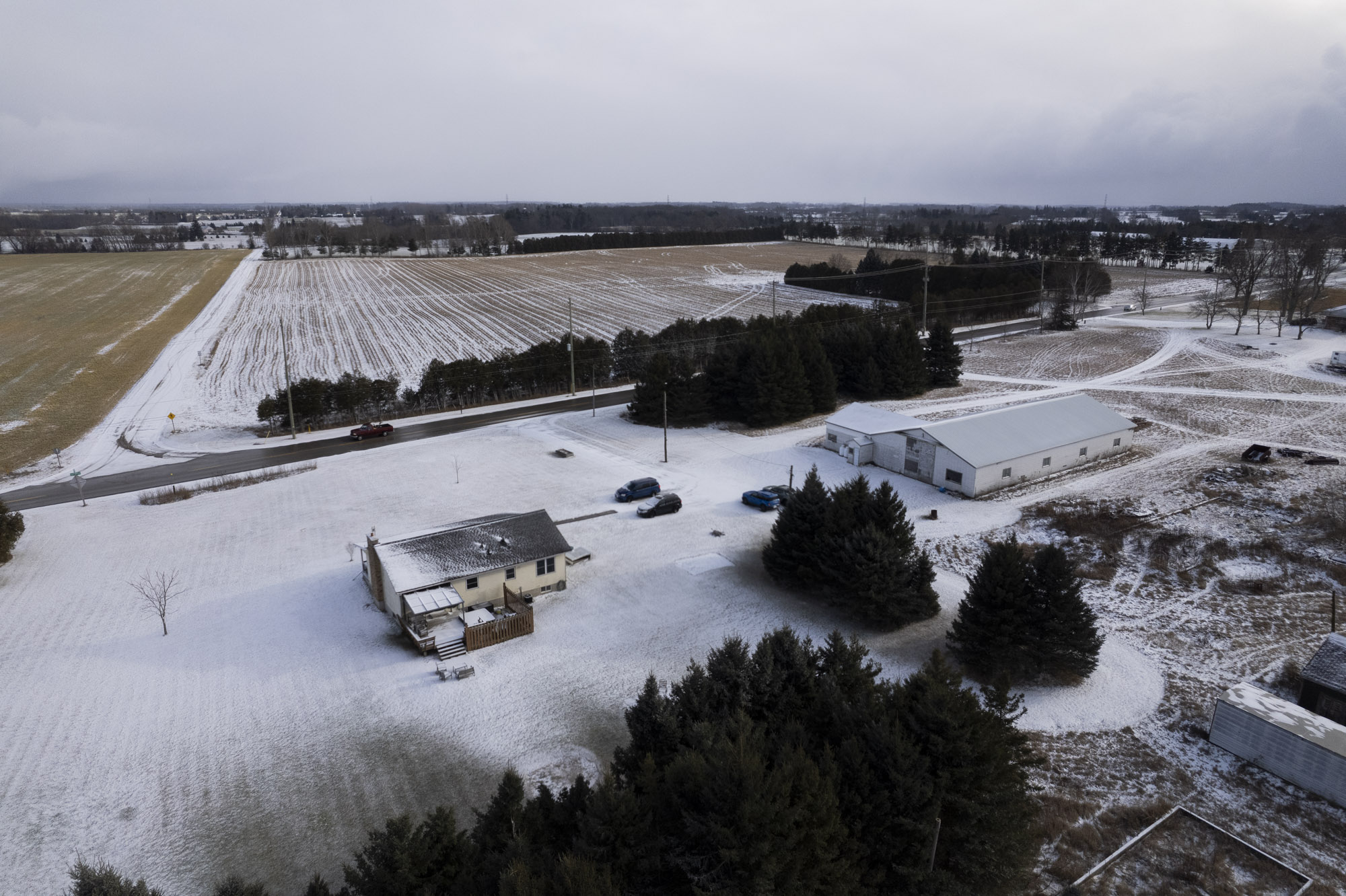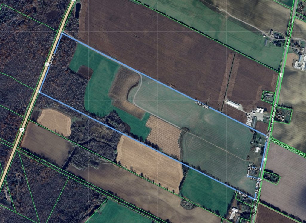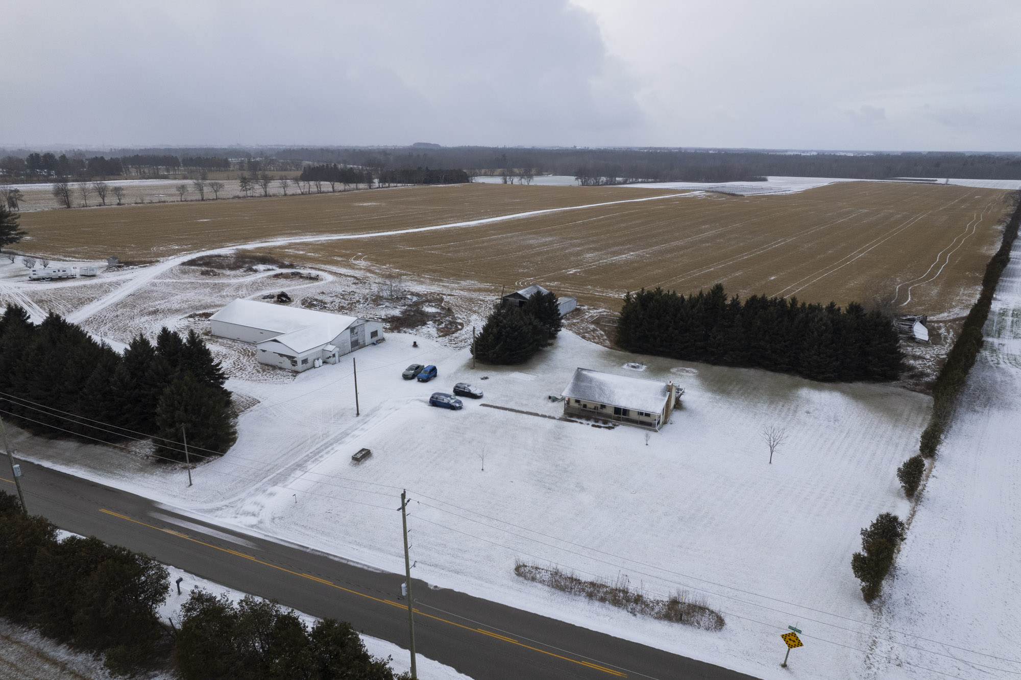Former tobacco farm on 150.5 beautiful acres and fronting on both Pleasant Ridge Road and Hwy 24, just west of the Branford city limits and south of Hwy 403 access. Offering approx. 120 workable acres of sandy soil with an irrigation pond, most recently in a cash crop rotation (has grown ginseng with 4.5 acres currently rented for ginseng until fall of 2025). There is also an approximate section of about 45 acres that is zoned for aggregate extraction (some extraction has happened in the past) and approx. 22 acres of bush. The 50’x100’ pack barn is clear span with a propane heated strip room. The immaculate and well maintained three bedroom bungalow is owner occupied and was built in 1995. This property is serviced with natural gas and is available for your immediate plans. Book your private viewing and add it to your portfolio today. Annual property taxes: $5,235.