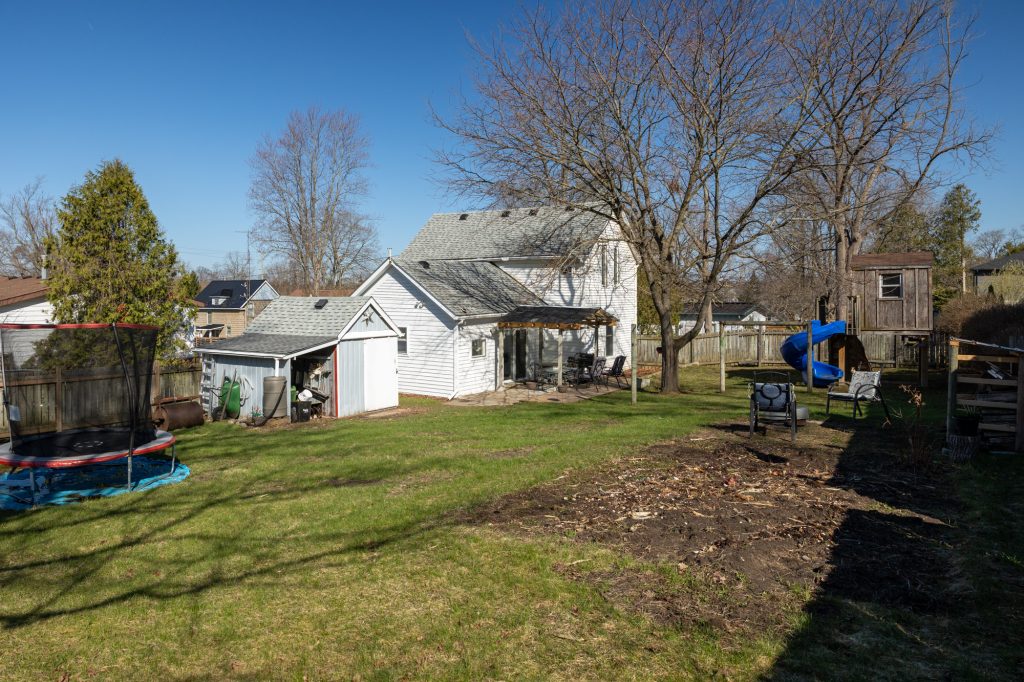Great starter or small family home near all amenities in the charming town of Waterford, with a large yard. Featuring 3 bedrooms, 2 full bathrooms, a spacious living room with tall ceilings, formal dining room & front mudroom. The kitchen is the heart of the home, and this one is a good size with a peninsula and all major appliances included. Just off the kitchen is the main floor laundry room and sliding doors to the backyard patio with pergola. Wonderful, spacious back yard complete with two large sheds; handy for your tools and toys; and a super fun playhouse with slide for the kids. Loads of private and street parking as well. This is a great opportunity to buy at a fair price in a good neighbourhood close to schools, all amenities, the ponds and trails. Do not delay, book your private viewing today. Annual property taxes: $2,868.